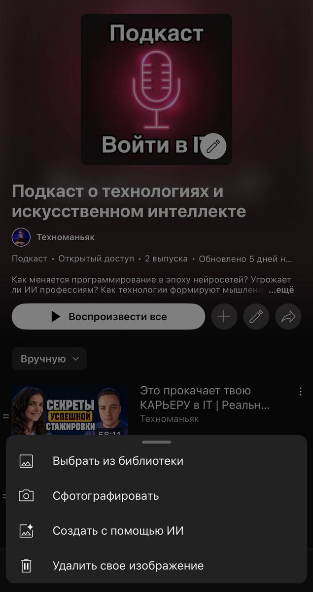 «Люблю» то, как YouTube по тихому добавляет на платформу свои ИИ функции Обновлял лого своего подкаста на YouTube и обнаружил, что появилась возможность сгенерировать лого внутри самого YouTube с помощью ИИ Какая модель используется для генерации непонятно, но самое интересное при такой генерации даже промт ввести не дают, выбирай только из предложенных вариантов, а они ниочем💩 Вот так вроде, ввели новую функцию это хорошо, но реализация... 💬Telegram | 📹YouTube | 💳Boosty