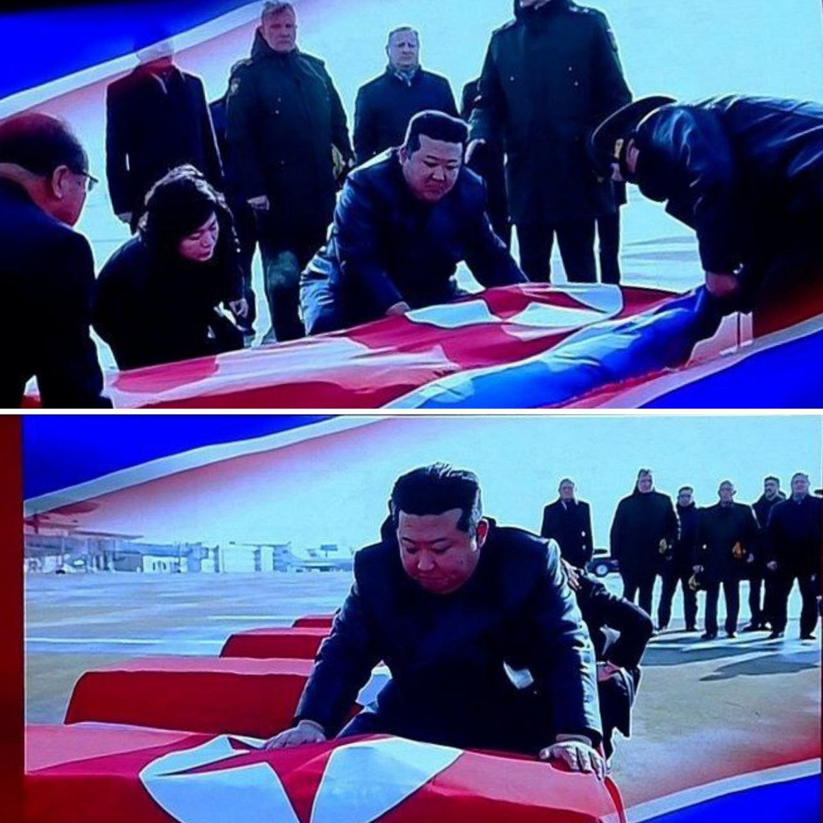 Ким Чен Ын в аэропорту Пхеньяна встретил погибших в боях за освобождение Курской области от ВСУ военных КНДР @SPUTNIKBY