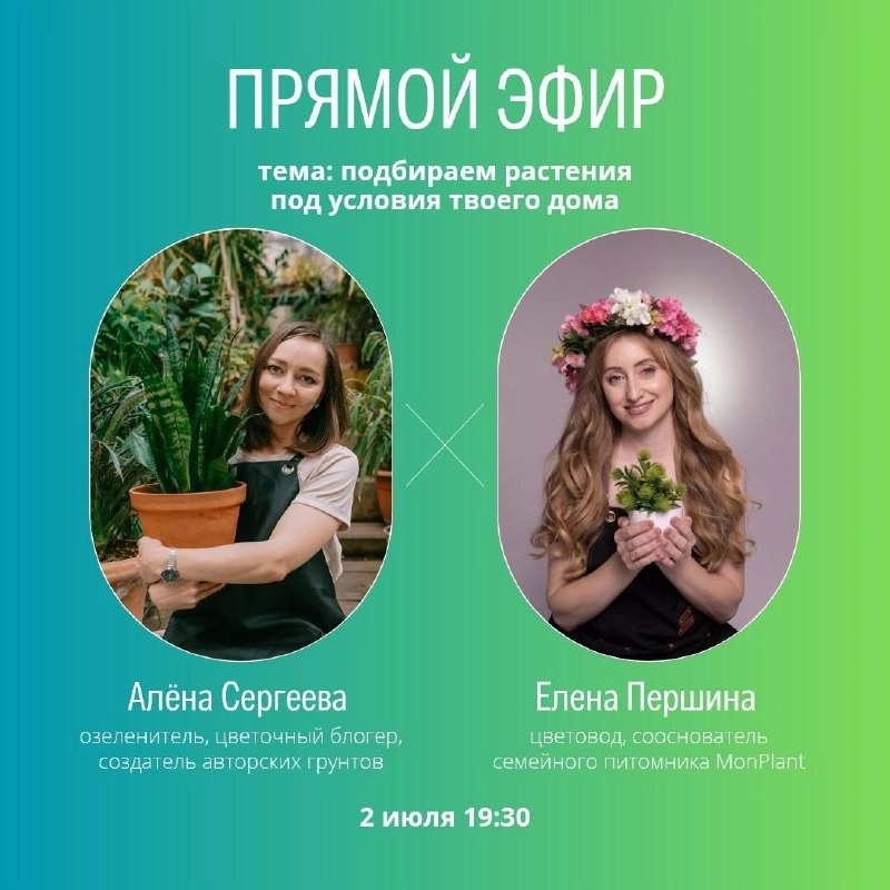 В эфире мы с Аленой (цветовод и озеленитель) хотим поговорить о самом важном: как выбрать растения так, чтобы они действительно жили, а не умирали в углу от перелива и дефицита света.