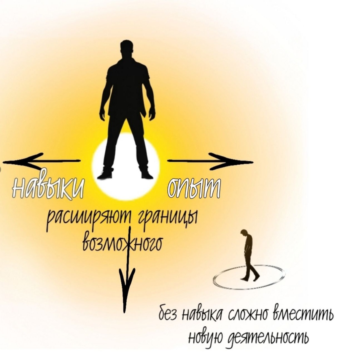 Возможности не появляются — они расширяются. А ты? На днях я задумалась об этом вопросе. Он не новый, но для многих болезненно актуальный. Почему кто-то растёт — вширь, вглубь, вверх? А кто-то — живёт в фантазиях, злится, сравнивает и сужается, сжимается вместе с возможностями. Я оформила это в очень простую схему (смотри картинку⬆️) 🔄 Большой круг — это человек, который действует. Он пробует, ошибается, делает снова. Через это накапливает навык, опыт, уверенность. И — главное — его возможности расширяются, потому что он сам становится "больше". В каждой новой деятельности он способен «вместить» в себя больше задач, решений, состояний, жизни. ⚫Маленький круг — это человек, который много думает, но не делает. Он фантазирует, но не пробует. Планирует, но не рискует. А значит, не растёт в опыте. Вся жизнь в голове и со временем появляется внутреннее напряжение: — разочарование, — зависть, — ощущение, что «у других получается, а у меня — нет». Но дело не в «других» и не в судьбе. Д