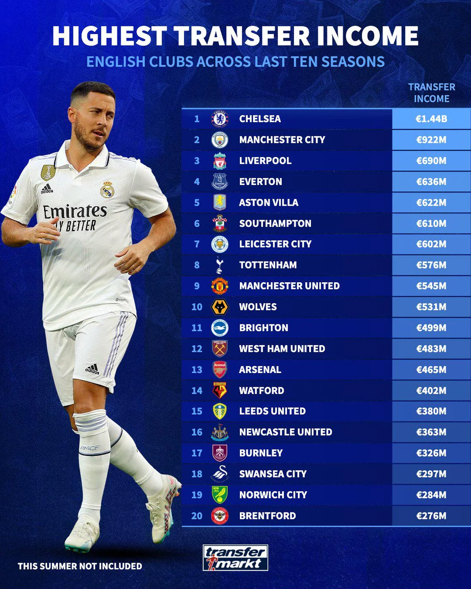 В преддверие открытия летнего трансферного окна Transfermarkt решил напомнить нам, какой клуб АПЛ за последние десять сезонов больше остальных заработал на продаже футболистов.