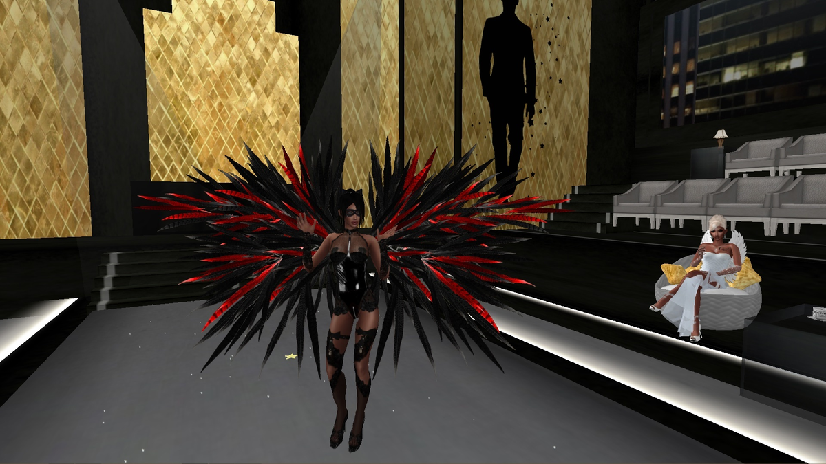 ★На создание образов меня вдохновляли как раз-таки наши дизайнеры. Потому что я сначала читаю образ который нужно создать, а затем в голое прокручиваю варианты из той одежды, которая у меня уже есть в гардеробе, и которая наиболее удачливее и лаконичнее передала бы эту задумку образа. Я люблю стилизовать образы различными аксессуарами, как это было в данном шоу я использовала 3 разных крыльев, что я так люблю носить в игре.