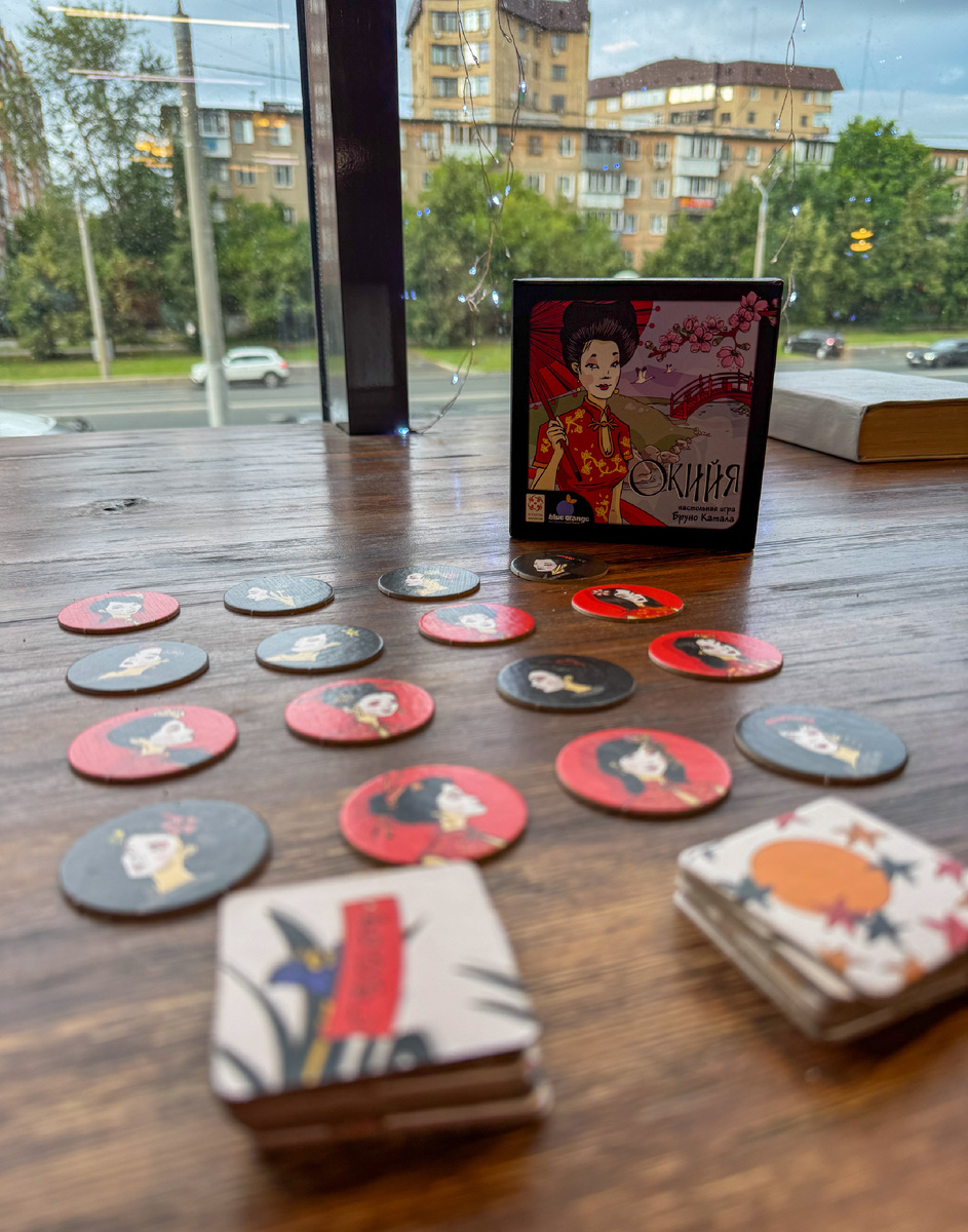 Вообще «Окийя» ещё как будто подходит ввиду своей компактности в качестве игры в дорогу: и в поезд, и в самолёт — и это ещё один плюс в копилку этой настолки.