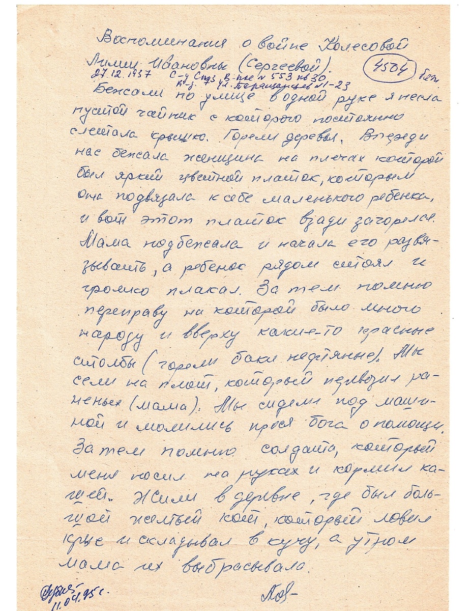 Воспоминания Колесовой (Сергеевой) Лилии Ивановны