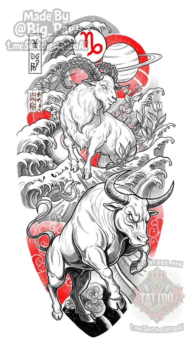 #2565 Подборка по запросу подписчика - подбору козерог в год быка 🧠 SYNTX 💳 Донат 😎 НейроБро 😎 Эскизы без вотера 💀 Эскизы от нейросети #знакзодиака #бык #козерог