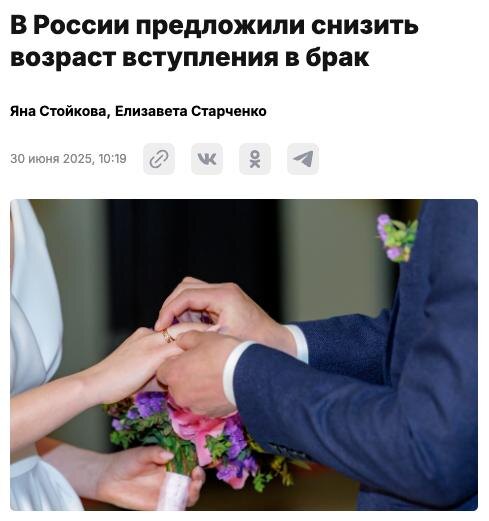 Мол, ранние свадьбы позволят молодым родителям сразу получать помощь от государства и якобы прокачают демографию.