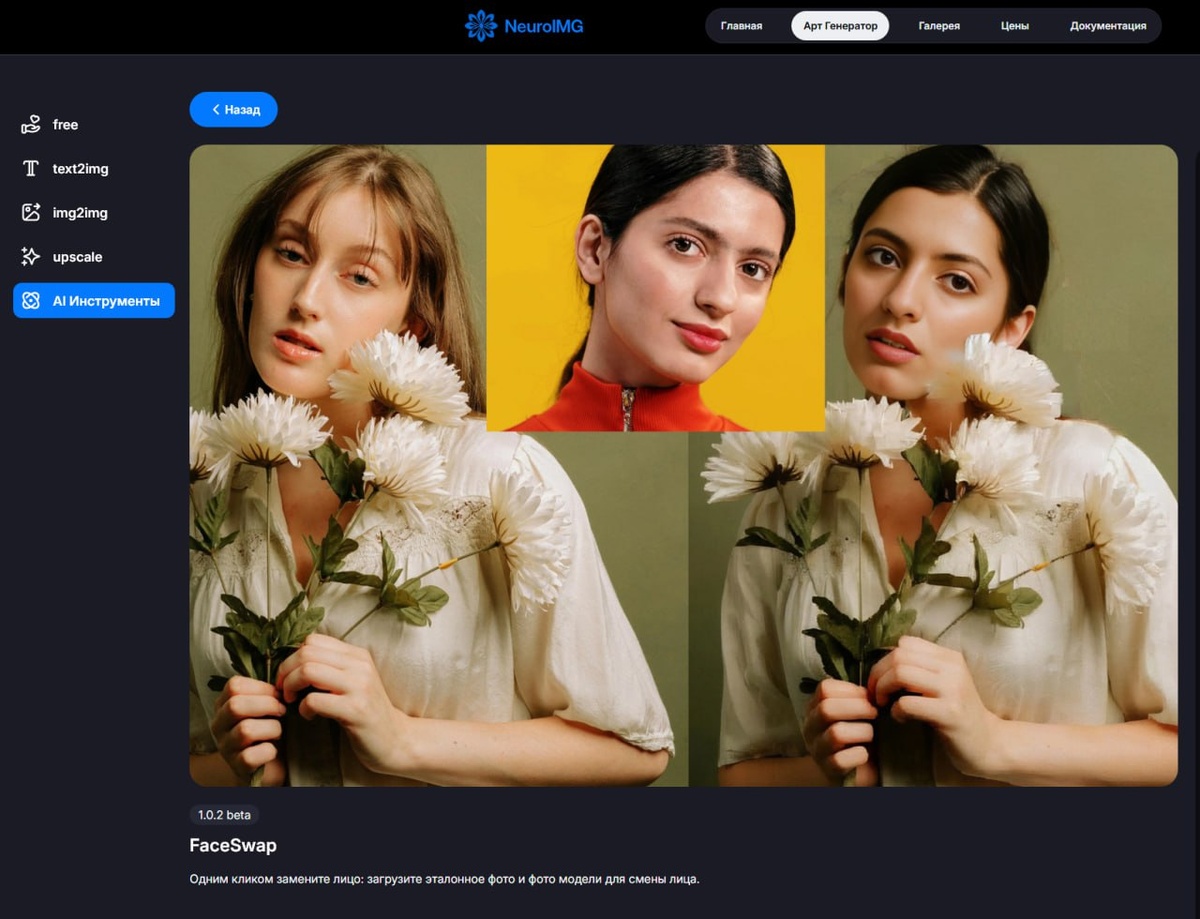 Инструмент FaceSwap доступен для всех пользователей на NeuroIMG.ART