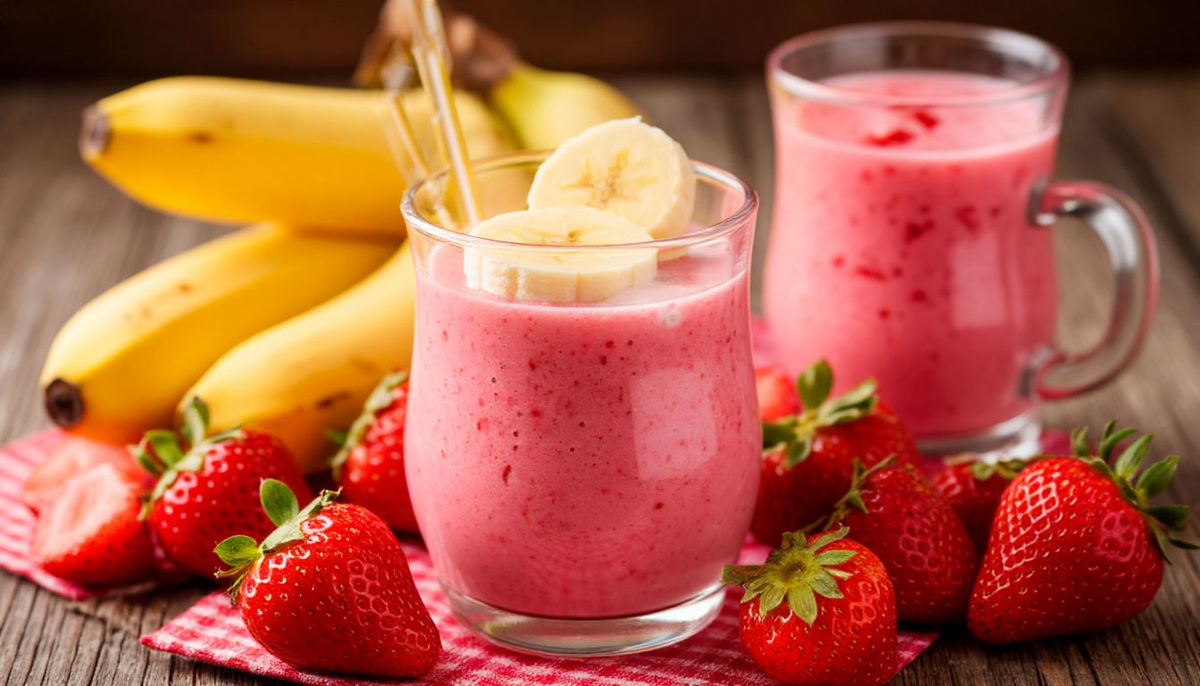 Энергетический смузи с бананом и клубникой, быстрый и полезный рецепт для здорового завтрака