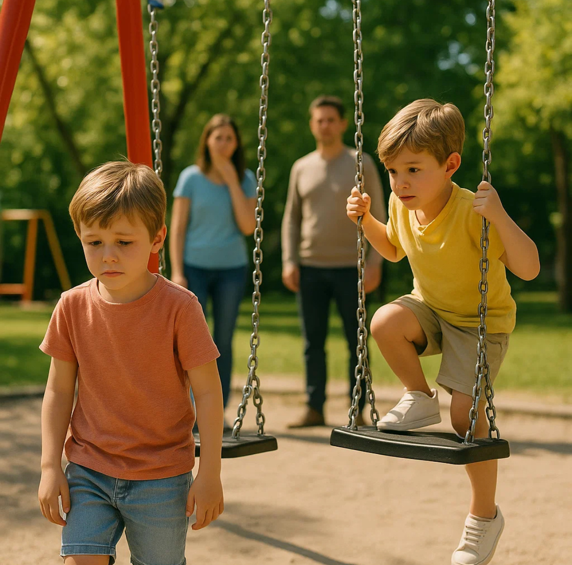 Лето, детская площадка, любимые качели… И вдруг ваш малыш слезает и уходит, потому что кто-то подошёл и «выгнал» его. Что делать родителям в такой ситуации? Как помочь ребёнку чувствовать свои границы и учиться договариваться? Если малышу 1–1,5 года, он может даже не понять, что произошло: просто встанет и уйдёт, ведь в этом возрасте дети ещё слабо ощущают «своё» пространство. Но уже в 2–3 года у ребёнка появляется «самость», и он может реагировать слезами, обидой или протестом. Это абсолютно нормально: ведь для детей качели, горка или игрушка — часть их личного пространства, и когда кто-то вторгается, они чувствуют нарушение границ. Лучше всего реагировать сразу, не дожидаясь слёз или разборок: ➡️ Если видите, что к вашему ребёнку подходит другой малыш с намерением «подвинуть», подключайтесь вовремя. Спокойно, мягко, на уровне глаз, показывая пример вежливого общения и умения договариваться: «Это общие качели. Сейчас качается мой сын, он ещё не закончил. Когда покачается — можно бу