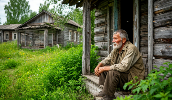 Лишь дымок из трубы избушки Ерофея свидетельствовал, что здесь ещё теплится жизнь. Дом его стоял на отшибе, будто стесняясь соседства с другими развалюхами. Крыльцо скрипело жалобно, словно просило пощады. Но дед, похожий на высохший гриб-дождевик, каждый вечер выходил на него покурить, не обращая внимания на стоны древесины.