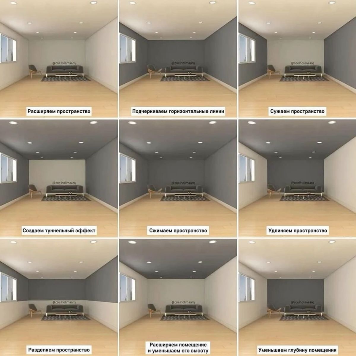 С помощью правильно подобранного цвета стен можно заметно скорректировать пространство так как вам надо: сделать комнату просторнее, или наоборот уменьшить ее до состояния давящей клетки. Сохраняйте эту подсказку - она вам пригодится, когда соберетесь обновлять интерьер или делать ремонт. И ещё один важный нюанс, про который многие часто забывают - размеры и формы мебели и всех предметов интерьера должны быть подобраны с учетом геометрии и метража комнаты, чтобы она выглядела просторной и оставалась функциональной, а не захламленной и темной. Диван: • Для комнаты 15-20 квадратных метров (и более) можно рассматривать мебель от 210 см в длину, от 90 см в ширину и глубиной от 100 см. • Если у вас очень просторный зал (больше 20 квадратных метров), то можно выбирать диваны длиной 240 см и более. • В небольших комнатах (площадью около 10-15 квадратных метров) мебель может быть длиной около 180 см и шириной около 80-90 см. • Для узких или тесных гостиных можно рассматривать модели компактных