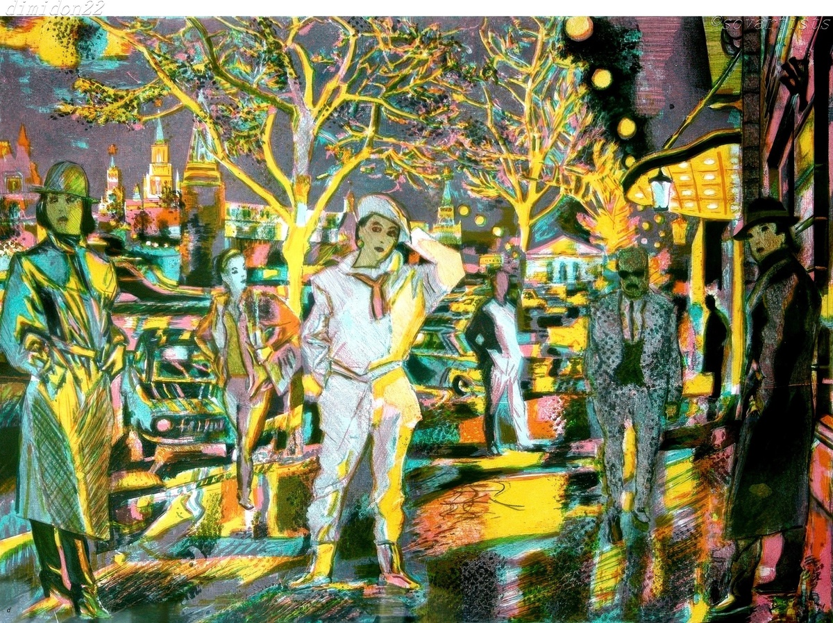 Демко Адольф Иванович (07.05.1940, Москва - 30.10.2013, там же). «Вечерний свет». Из серии «Москва вечерняя». 1986 год. Бумага, цветная литография; 520 х 735 мм.; (Балашихинский историко-художественный музей Московской области).