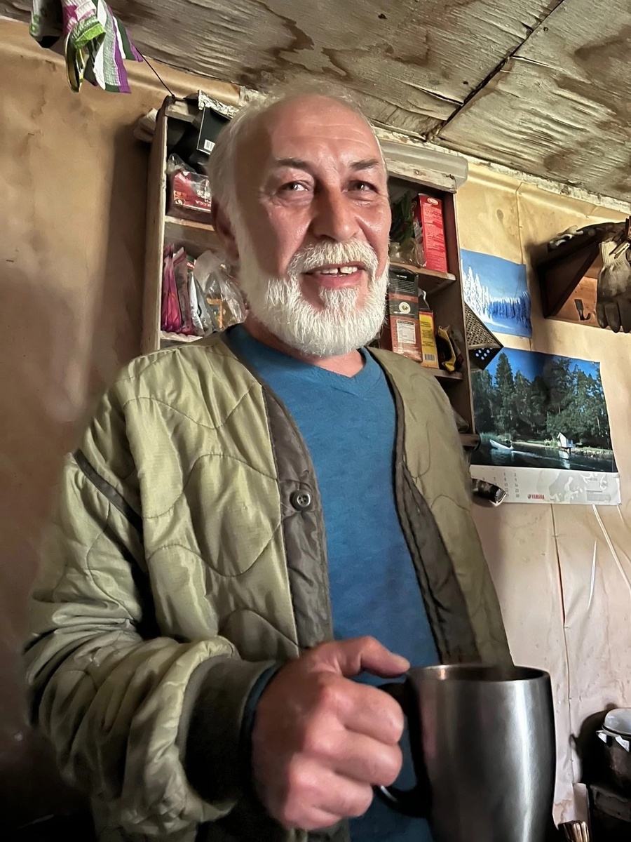 Знакомьтесь, это Александр и Анатолий, оба геологи, которые уже на пенсии. Но каждый год они приезжают на Приполярный Урал, чтобы провести здесь время. Живут они в одной из изб ныне заброшенной деревушки, которые местные называют Додо. Кстати, с экзотической птичкой название никак не связано, просто рядышком, спускаясь с Уральских гор, протекает речка Додовис. Она и дала название поселению. А геологи нашли одну из хижин, обжили ее и теперь проводят тут лето. Туалет свой они шутливо называют Байконуром (потому что тот стоит на склоне и от порывов ветра его трясет, как космический корабль при старте), а настойку из местных трав - Додовкой. Внутри все очень скромно, я бы даже сказал - сурово. Но функционально. Печка греет, чайник кипит. Хозяева приняли нас очень гостеприимно, накормили вкусным супом, сварили кофе, предложили рюмашку додовки и имбирные пряники. Я бы, наверное, все лето так провести не смог бы. Но определённый кайф в таком времяпровождении на краю цивилизации точно есть.