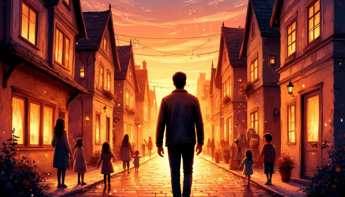 В одном городе, где дома на закате переливаются то сиренево-розовыми, то жарко-мандариновыми цветами, жил-да-был — да, именно так, как в старых добрых сказках — Сказочный человек. Никто не знал точно, кто он: возможно, прохожий в смешной шапке, тот, кто незаметно подмигнёт девочке, забывшей улыбнуться. А может, это тот самый сосед с пятого этажа, у которого на окне цветёт фикус, и всегда открыт форточкой для весеннего ветра... Говорят, Сказочный человек умел видеть в каждом событии другое измерение — золотые искорки между словами, трещинки света в самой темной печали, море возможностей там, где все видели рутину. Когда в городе наступал вечер и усталость сыпалась по тротуарам, Сказочный человек выходил на прогулку. Он не нёс громких речей и не заворачивался в плащи громких подвигов. Он просто находил тех, кому было особенно грустно, скучно, или тревожно, и заводил с ними разговор. — Знаешь, — мог он вдруг сказать человеку с уставшими глазами, — у тебя за плечом сегодня спит маленький д