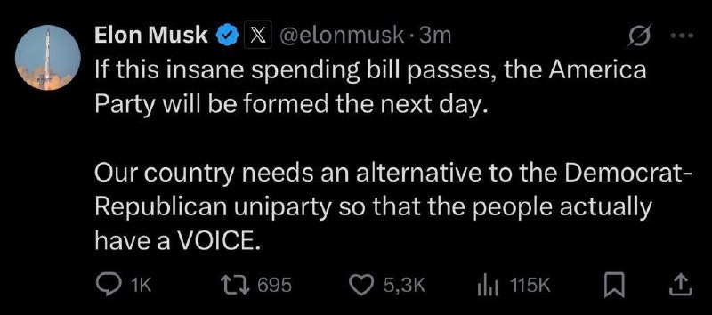 MUSK: America Party launches IMMEDIATELY if Trump’s spending bill passes