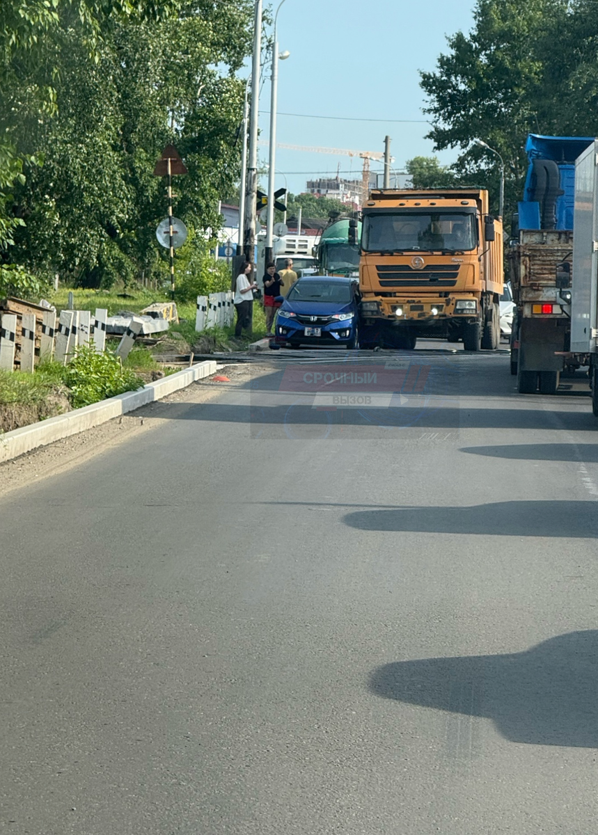 #дтп #Хабаровск Утреннее ДТП в Хабаровске. Самосвал прижал Хонду к бордюру на проспекте 60-летия Октября. Столкновение произошло примерно в 8:20 1 июля неподалёку от перекрёстка с улицей Приморской. Движение по Проспекту сильно затруднено в обе стороны. Пробки в городе 7 баллов.