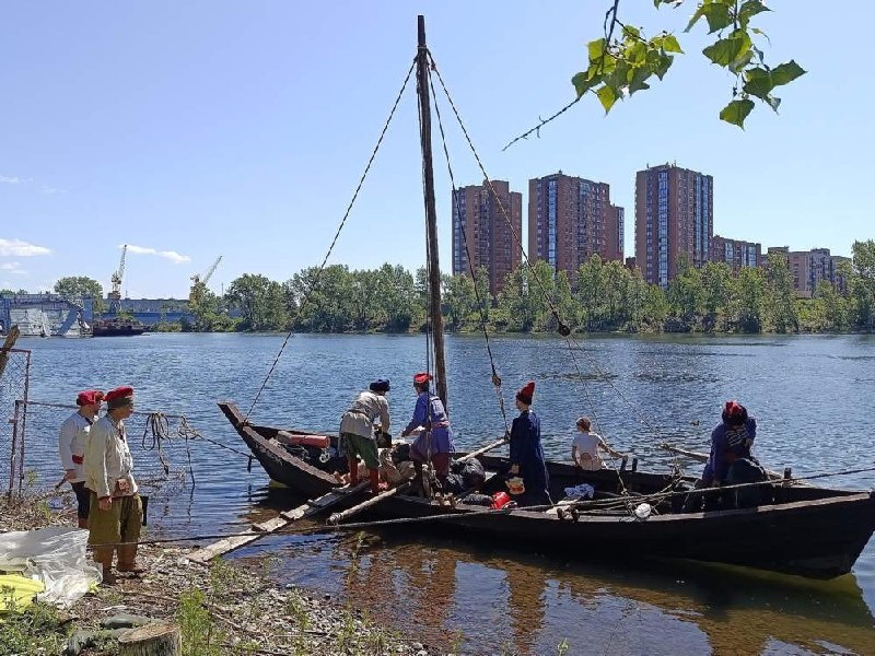 Деревянный струг «Такмак» отправился в экспедицию из Красноярска в Енисейск