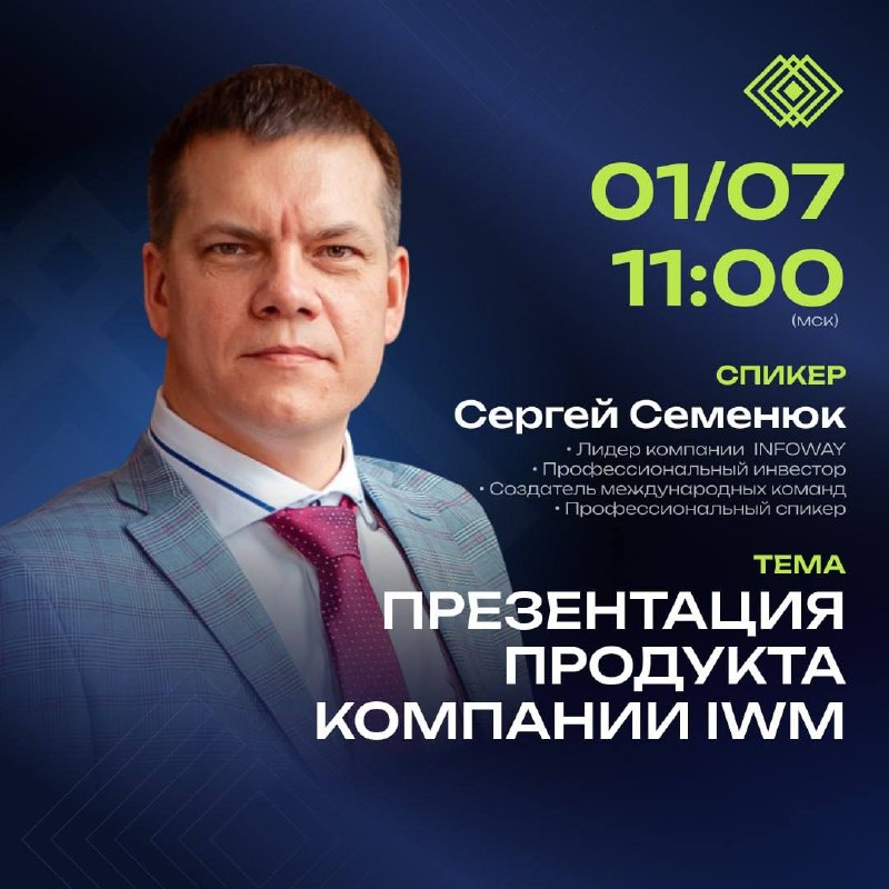 ⏰📅ПРИГЛАШАЕМ ВАС НА ПРЕЗЕНТАЦИЮ ПРОДУКТА КОМПАНИИ 🎤 🎤 Спикер: Сергей Семенюк ЛИДЕР КОМПАНИИ INFOWAY! 🤍Сетевой предприниматель с опытом более 20 лет! 🔗 Ссылка на встречу: https://us06web.zoom.us/j/2116731674?pwd=xahqmhZLmGsNMAcfVYG8sNdiNWlLRY.1