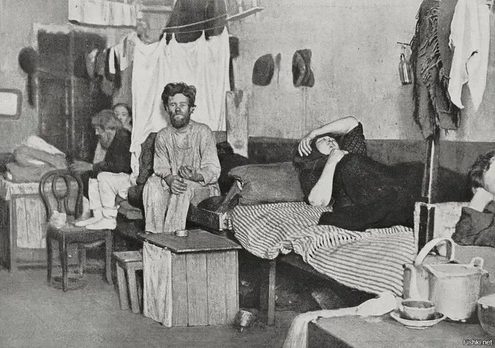 #этоинтересно В дореволюционном Петербурге аренда жилья была удивительно гибкой системой. Сдавали не только целые квартиры и комнаты, но и гораздо меньшие площади: углы, полкойки, а иногда даже треть койки. Типичная схема выглядела так: домовладелец сдавал квартиру; арендатор делил ее на отдельные углы; жильцы углов сдавали койки холостым рабочим; а те, в свою очередь, могли делить койку с коллегами, работавшими в разные смены. Такая многоуровневая субаренда была законной и не требовала согласия домовладельца и называлась «нанимать от жильцов». Углы часто обозначались ситцевыми занавесками. В одной комнате могли проживать до четырех семей, а дети спали вместе с родителями на больших семейных кроватях. Цена зависела от расположения: углы у окон стоили 5 рублей, а у печки — 3 рубля. Фото — «Пыль минувших столетия»