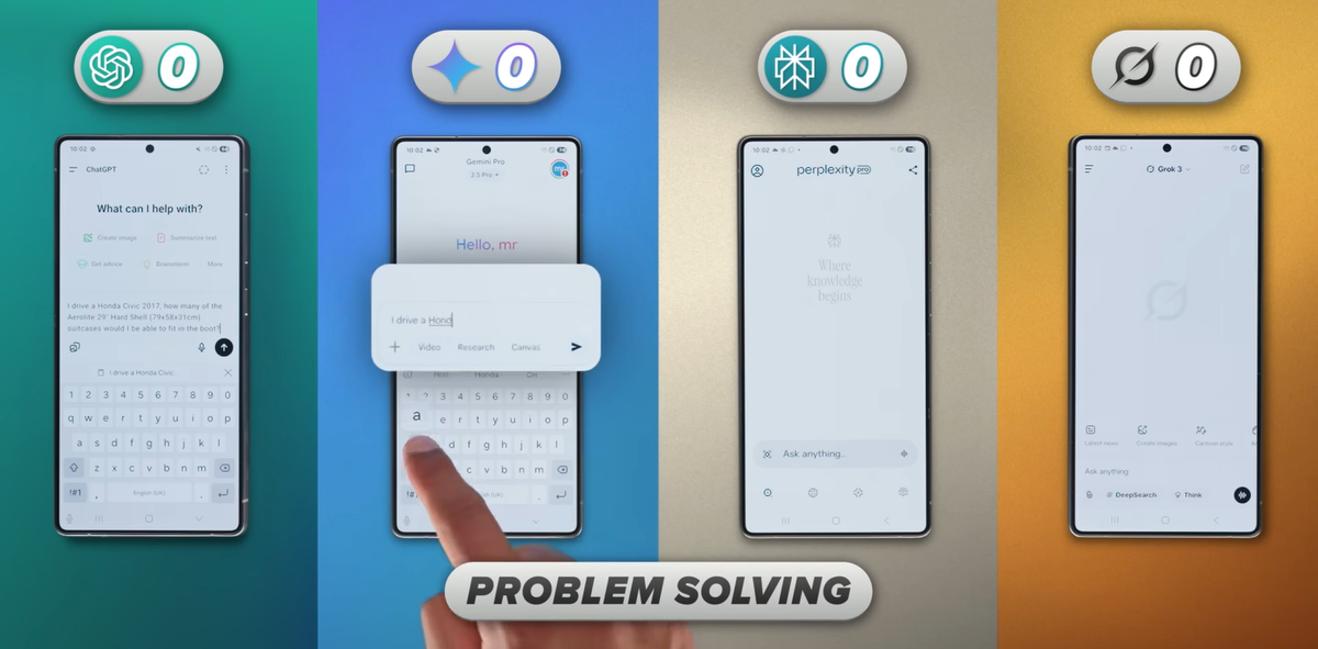 На YouTube-канале Mrwhosetheboss выяснили, каким чат-ботом лучше всего пользоваться на смартфоне: ChatGPT, Google Gemini (2.5 Pro), Perplexity Pro или Grok 3. За решение проблем по 1 баллу получили Google Gemini Pro и ChatGPT, а Grok 3 - 2 балла. Примерно та же ситуация была с математическими вычислениями. С переводом лучше всего справляются GPT и Perplexity Pro, а вот Grok более сложные фразы переводил слишком буквально и показал себя хуже остальных. Итоговые оценки вы можете увидеть ниже на изображении. Больше всего баллов по результатам тестирования набрал ChatGPT (29). На втором месте был Grok 3 с 24 баллами, за ним шёл Gemini Pro (22 балла), а худшим чат-ботом стал Perplexity Prо: он получил всего 19 баллов.