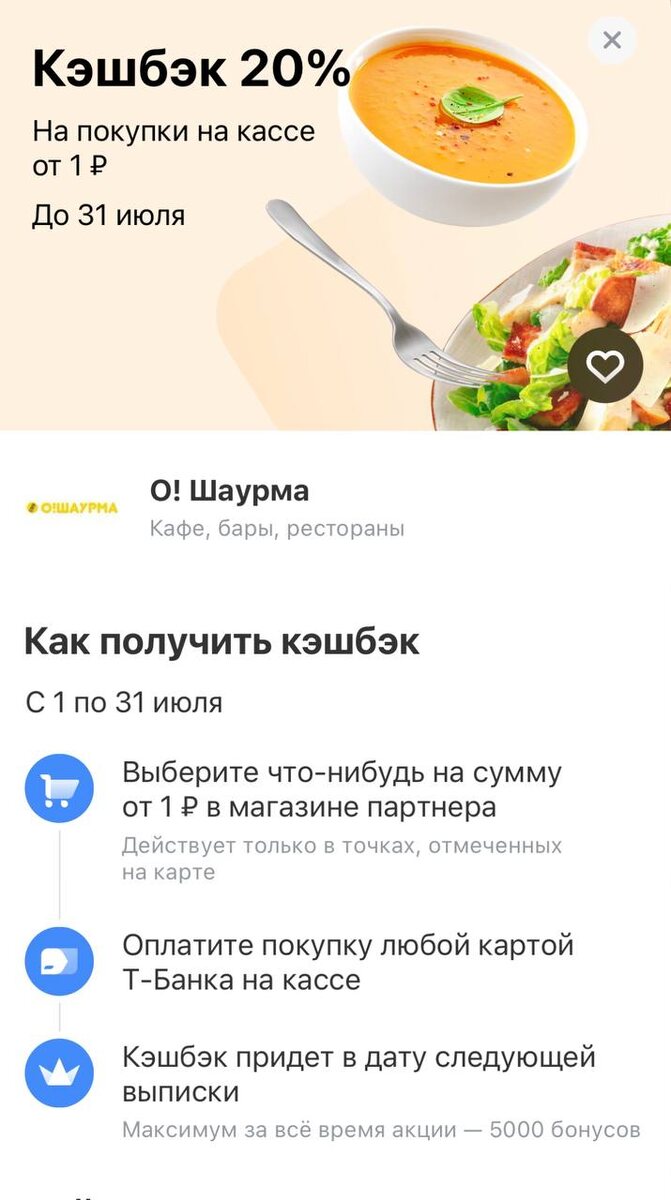 🎉 Кэшбэк 20% от О! ШАУРМА и Т-Банк!