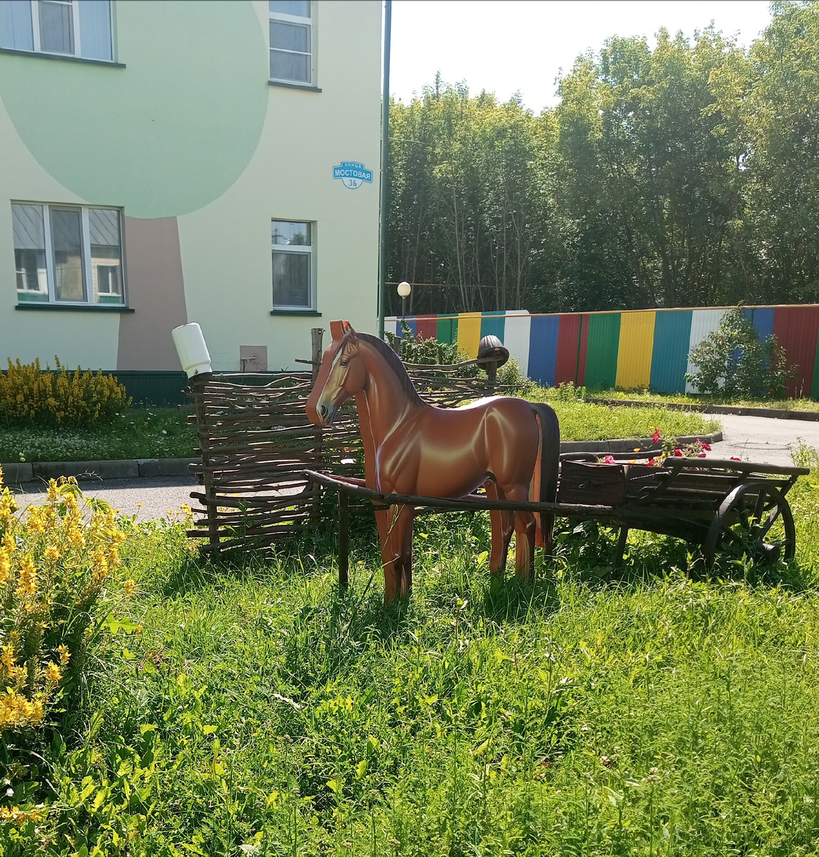 Благо у сада припаркована лошадь, так что пошли мы туда с большим энтузиазмом!