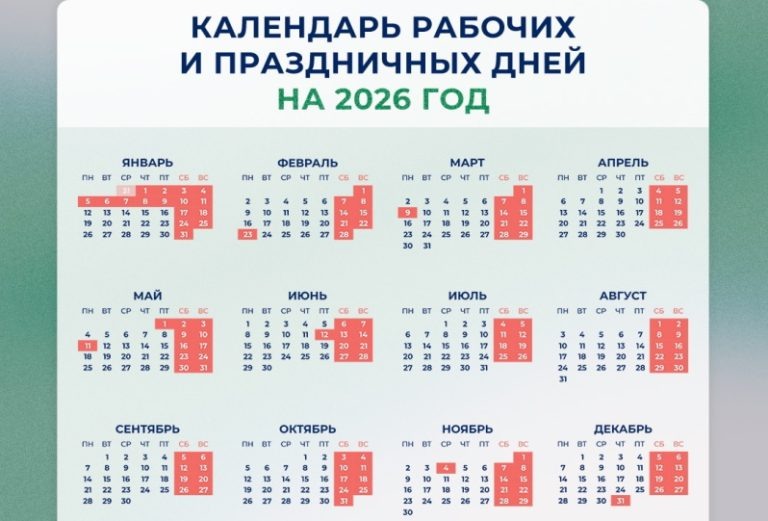 Минтруд разработал проект календаря праздничных и выходных дней на 2026 год. Проект постановления уже размещен на общественное обсуждение: «Постановление о переносе выходных дней, которые выпадают на праздничные дни, принимается Правительством ежегодно. Перенос осуществляется таким образом, чтобы оптимально распределить время труда и отдыха, по возможности объединить праздничные и выходные дни. Благодаря переносу, новогодние каникулы продлятся 12 дней – с 31 декабря 2025 года по 11 января 2026-го года. 5 раз в будущем году будут выходные по 3 дня: в феврале, марте, дважды в мае и на День России в июне», – отметил глава Минтруда России Антон Котяков. Новогодние каникулы – 12 дней отдыха! С 31 декабря 2025 года по 11 января 2026 года длинные зимние праздники. А еще сокращенные рабочие недели и дополнительные выходные. В феврале отдыхаем 3 дня подряд — с 21 по 23 февраля, в марте также трехдневные выходные — с 7 по 9 марта, в мае отдыхаем дважды по 3 дня — с 1 по 3 мая и с 9 по 11 мая, в