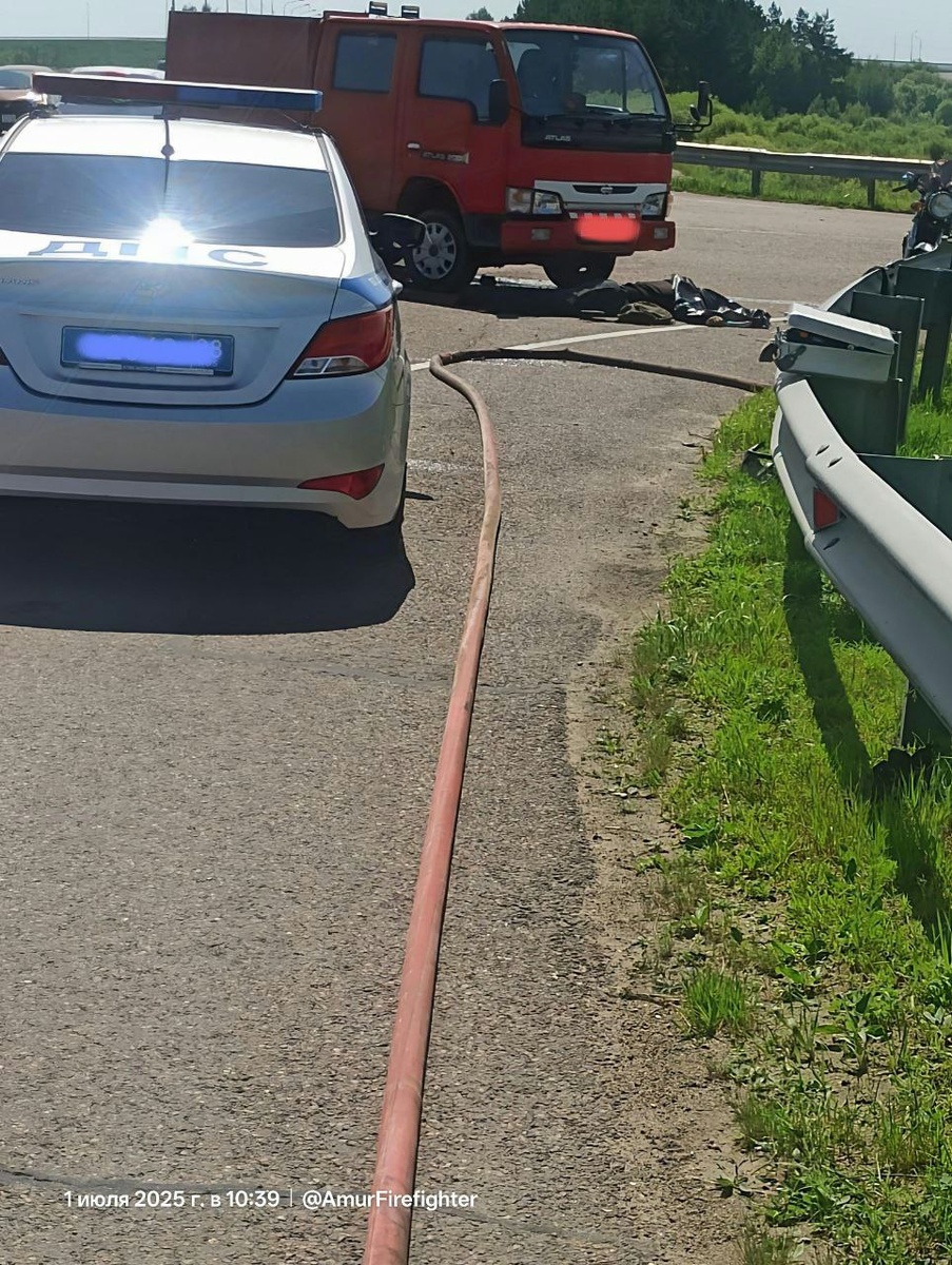 ПЧ 41 работает на месте ДТП (авто и мотоциклист) на трассе Благовещенск - Гомелевка