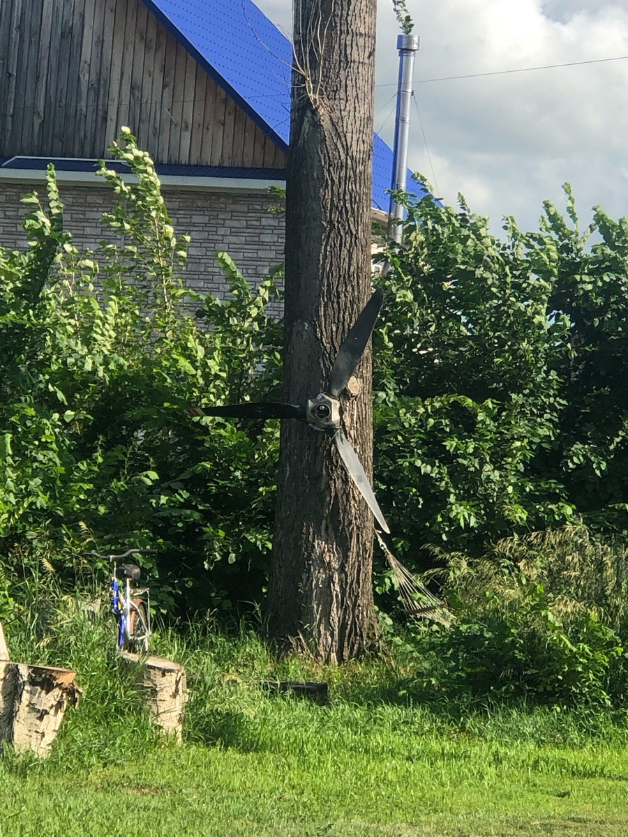 Интересная конструкция. Автору - респект. Идешь мимо и видишь - даже деревья готовы стать Карлсоном, чтобы свалить из Оби🙈👀