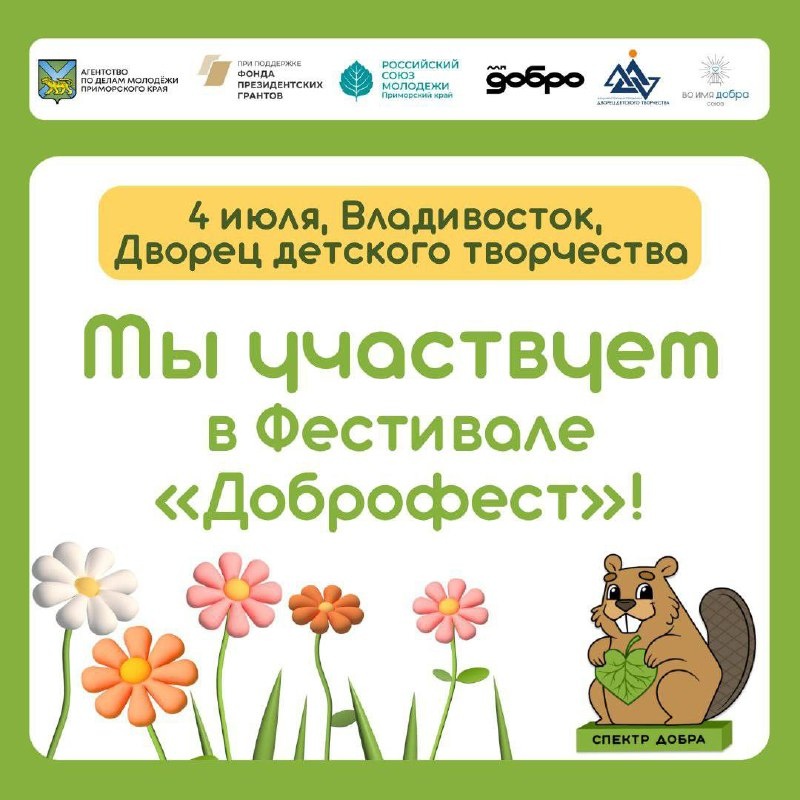 ❤ЦЕНТР ВОЛОНТЕРОВ ВВГУ ПРИГЛАШАЕТ НА ДОБРОФЕСТ В эту пятницу, 4 июля, на площади Владивостокского городского Дворца детского творчества состоится Форум организаторов добровольческой деятельности «Доброфест». В рамках форума пройдёт фестиваль, на котором будет организована ярмарка добровольческих организаций: посетители смогут познакомиться с общественными, благотворительными организациями Приморского края, поучаствовать в их активностях и узнать как можно стать добровольцем Наш ЦВ также примет участие в ярмарке! На нашей зоне вы сможете: ▫️Познакомиться с ЦВ ВВГУ ▫️Поучаствовать в акции «Крышечки помощи» 🗓 Встречаемся 4 июля с 11:00 до 17:00 во Владивостокском городском Дворце детского творчества (Океанский проспект, д.43). Вход свободный! ➡️Если вы хотите посетить образовательную часть форума, то обязательно пройдите регистрацию и дождитесь подтверждения участия - https://dobro.ru/event/11211578 Форум организаторов добровольческой деятельности «Доброфест» пройдёт в рамках прое