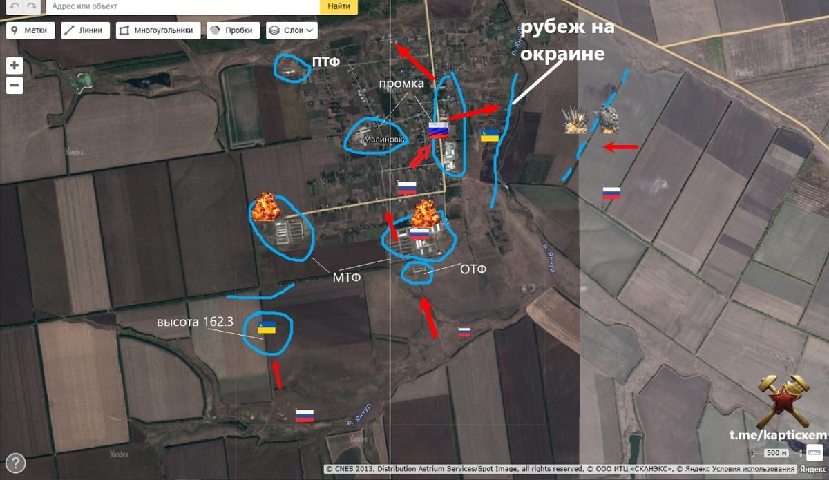 В ответ на пост Запорожский фронт Малиновка фактически наша, идет зачистка окраин. Взлом укрепа "Промки" в центре поселка обрушил оборону ВСУ Из рудиментов прошлого на Запорожском направлении осталась Малая Токмачка, которой тоже недолго быть в составе Букраины. А затем, начнутся проблемы у хохлов в городе Орехов. схемы и карты