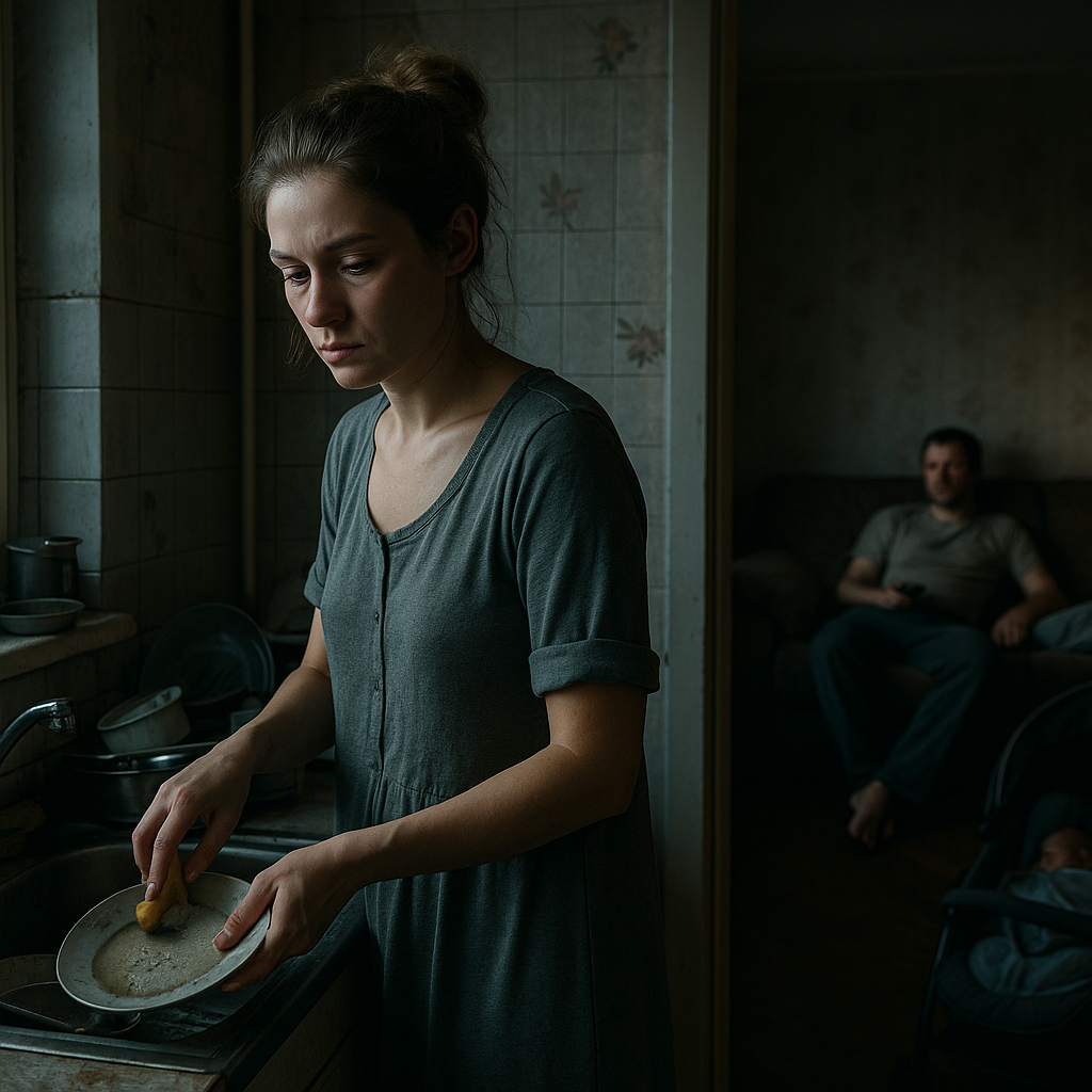 Ничего особенного. Алёна молча закатала рукава и начала отмывать последствия его холостяцких недель в её отсутствие. Покормила дочку, уложила, и принялась за уборку. К вечеру ноги подкашивались — организм ещё не восстановился после родов, а тут такая нагрузка.
