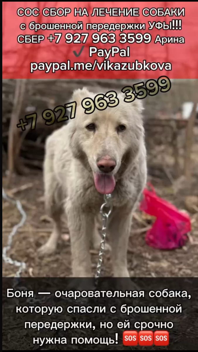 Необходимо лечение собаки спасенной с брошенной передержки! Боня — очаровательная собака, которую спасли с брошенной передержки, но ей срочно нужна помощь! 🆘🆘🆘