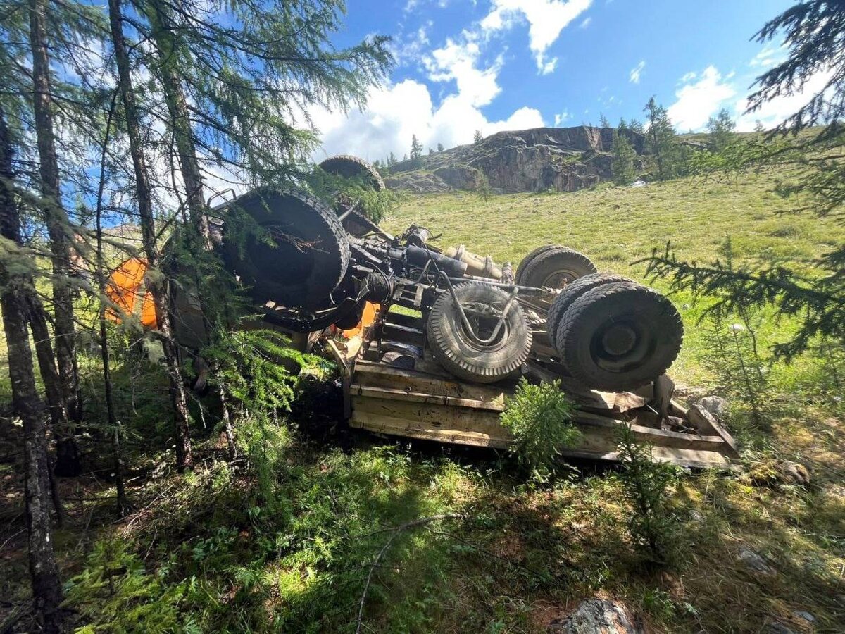 В Республике Алтай произошло смертельное ДТП с участием грузовика МАЗ 27 июня поздним вечером возле села Беляши водитель грузовика МАЗ не справился с управлением, в результате чего автомобиль съехал в кювет и перевернулся. 50-летний мужчина, находившийся за рулем, погиб на месте. Как позже установили сотрудники ГИБДД, погибший был лишен водительских прав. По факту аварии проводится проверка. Фото: Госавтоинспекция Республики Алтай