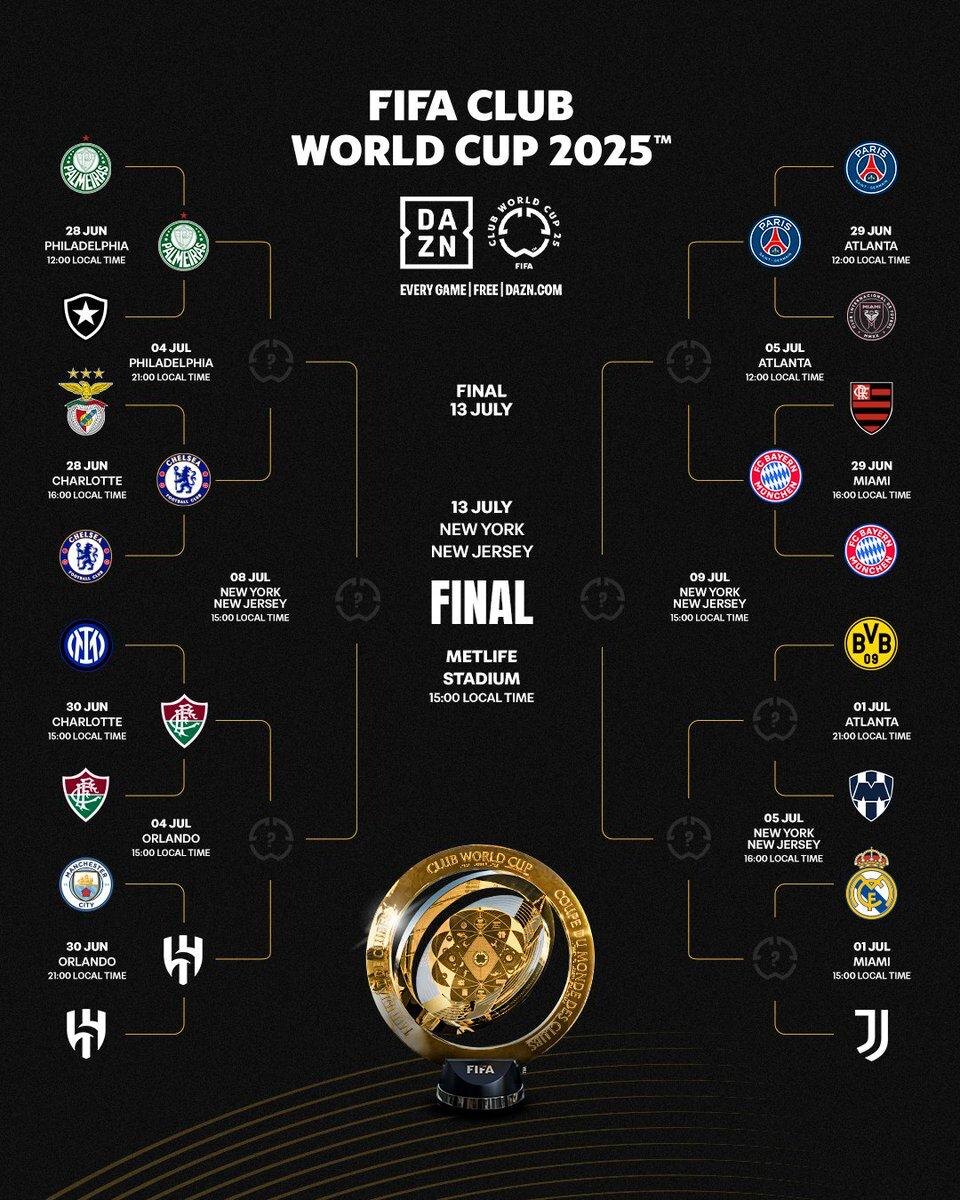 Плей-офф клубного Чемпионата Мира. "Челси" выйдет на "Аль-Хиляль" или "Флуминенсе", если одолеет "Палмейрас" в четвертьфинале ☝️
