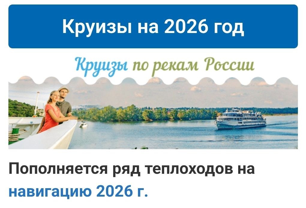Круизы-2026 со стартом из всех портовых городов России. Скидки раннего бронирования: 13% – до 01.07.2025 12% – до 01.08.2025 11% – до 01.09.2025 10% – до 01.10.2025 9% – до 01.11.2025 8% – до 01.12.2025 Все круизы на сайте Свадьба-Тур.