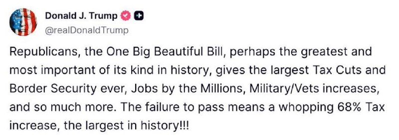 The failure to pass means a WHOPPING 68% Tax increase, the largest in history!!! — Trump doubles down on tax increase possibility