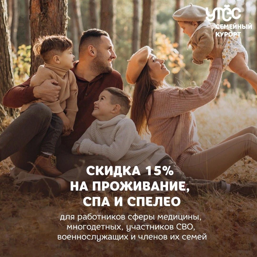 ⚡️Утес предоставляет скидки на отдых для военных, медработников, многодетных семей и пенсионеров! Скидка 15% на проживание, посещение SPA-комплекса и спелешахты для льготных категорий граждан: ▫️Военные и участники СВО, а также их семьи ▫️Медработники ▫️Пенсионеры ▫️Многодетные семьи ▫️Люди с инвалидностью Для того, чтобы получить скидку, необходимо предъявить подтверждающие документы