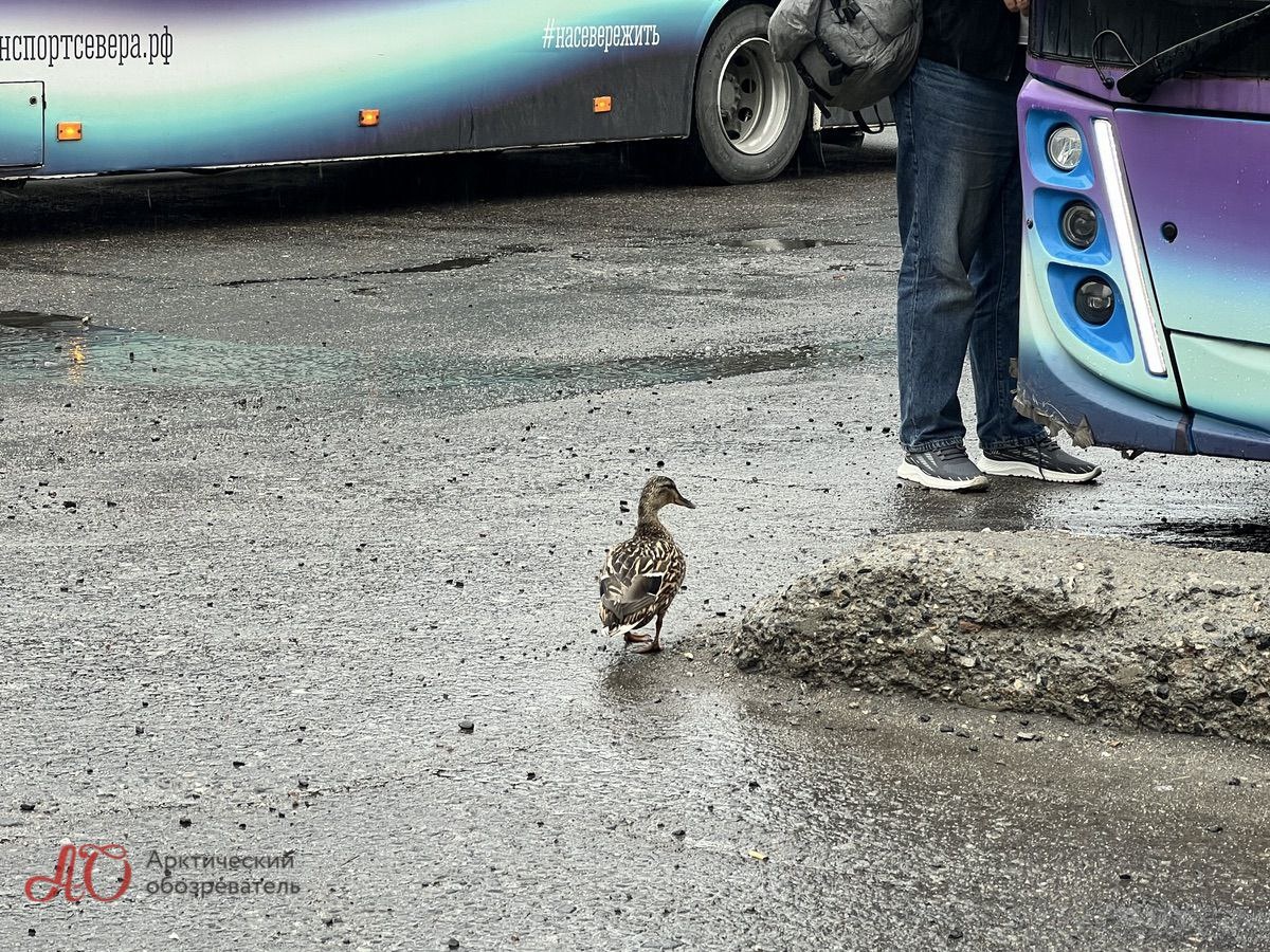Ничего необычного (?) – мама-утка гуляет по Нижней Привокзальной площади в Мурманске.