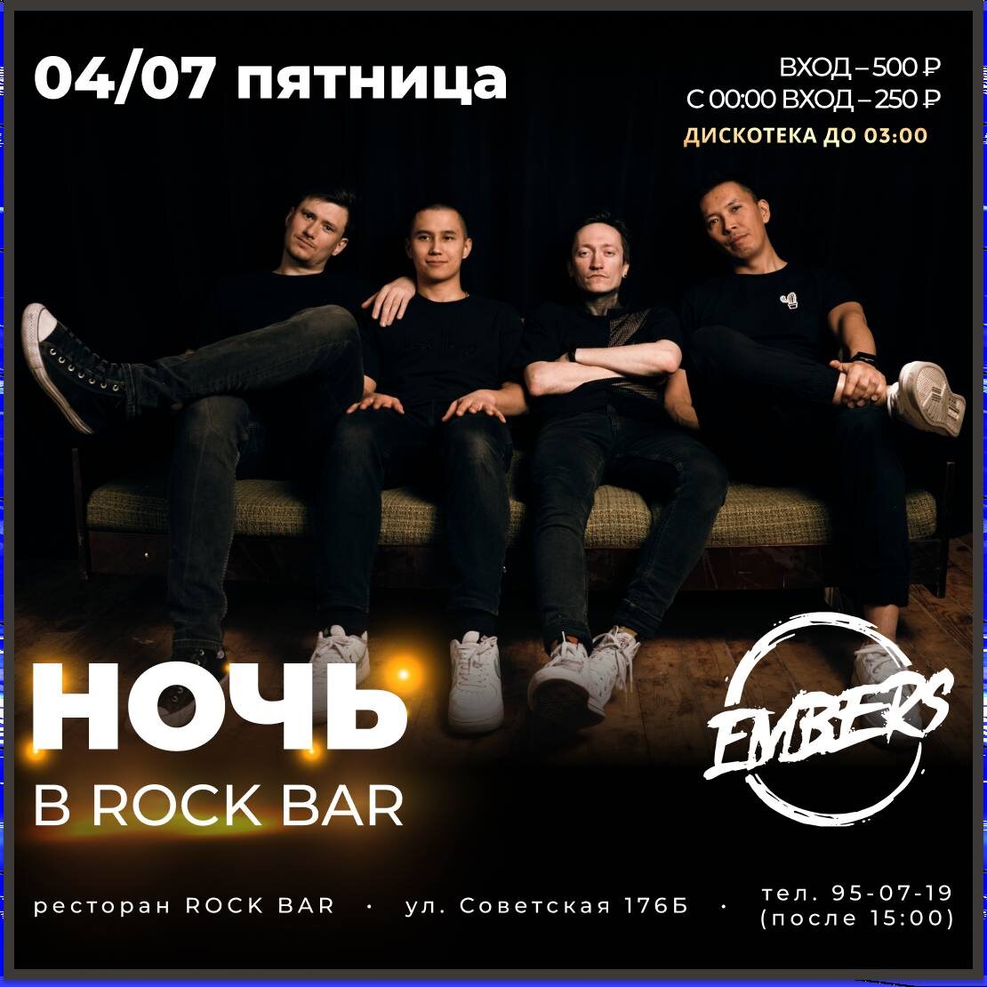 Эта ”Ночь” июльской пятницы будет жаркая и драйвовая. На сцене группа EMBERS, а после концерта дискотека из хитов всех стилей и времен!
