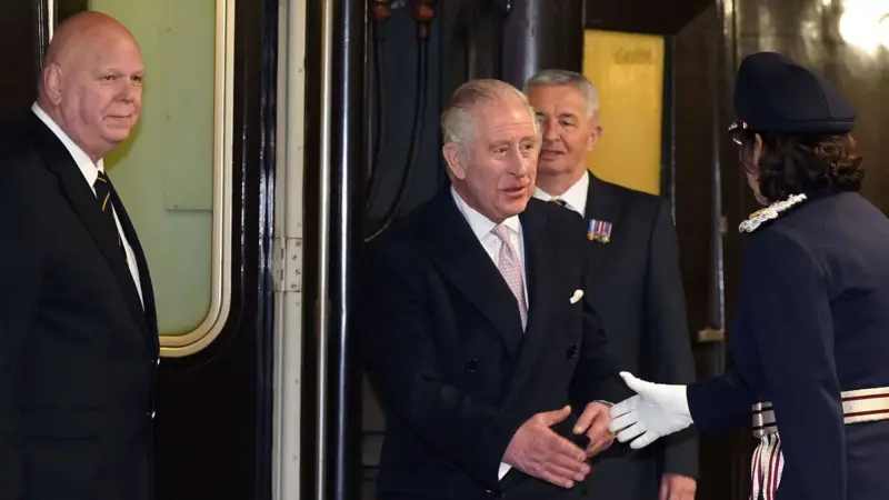 Карл III прибывает на королевском поезде в Манчестер, 2023 год