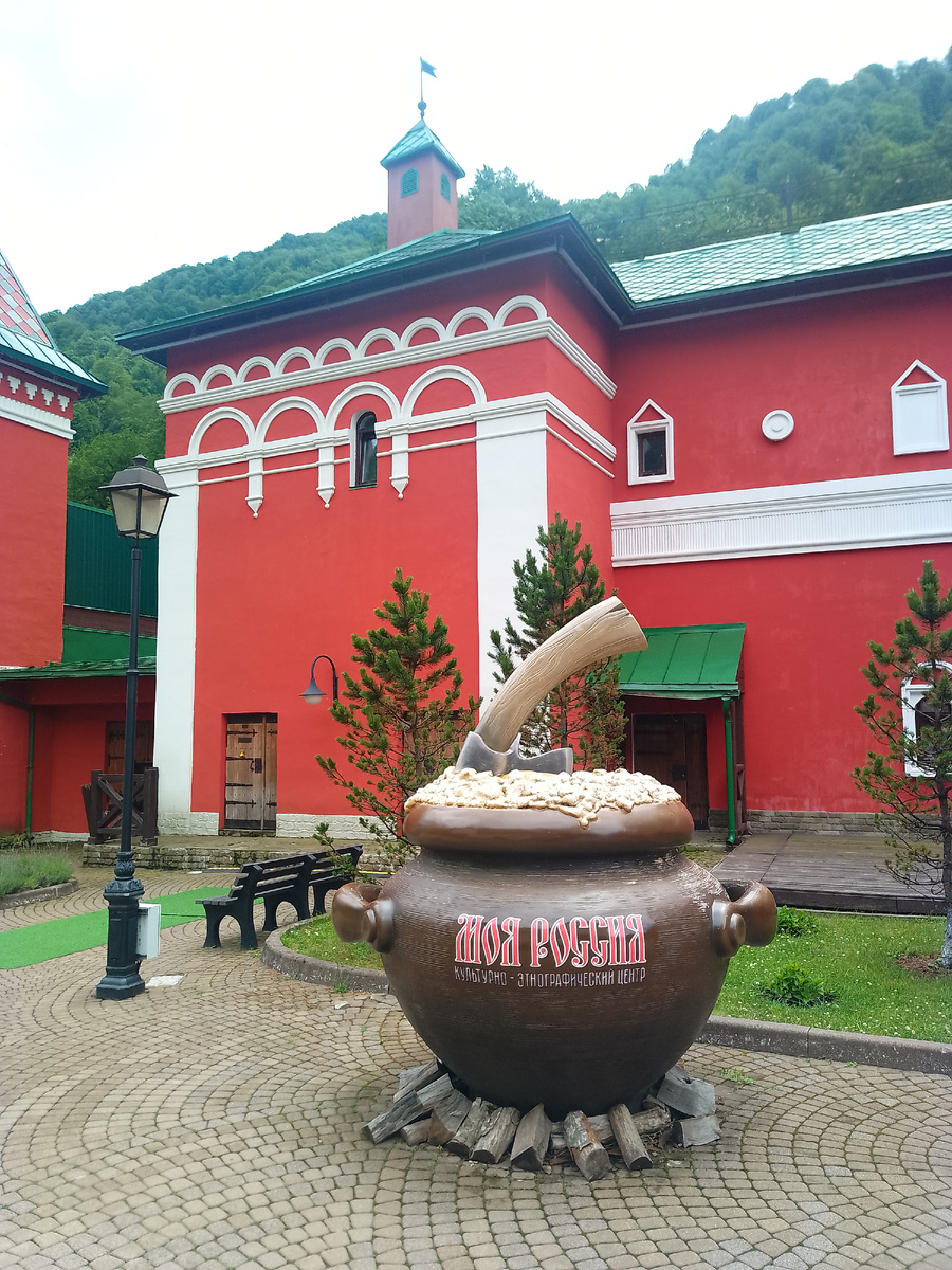 Вход обошелся 1000р на двоих взрослых. На территории этнопарка представлено 11 тематических павильонов, стилизованных под отдельные российские регионы.