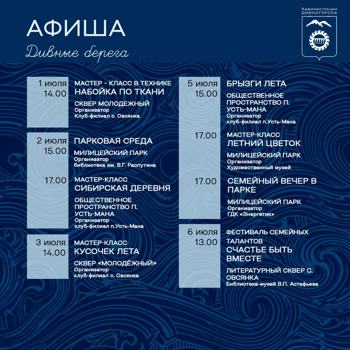 Ловите афишу предстоящих городских мероприятий.