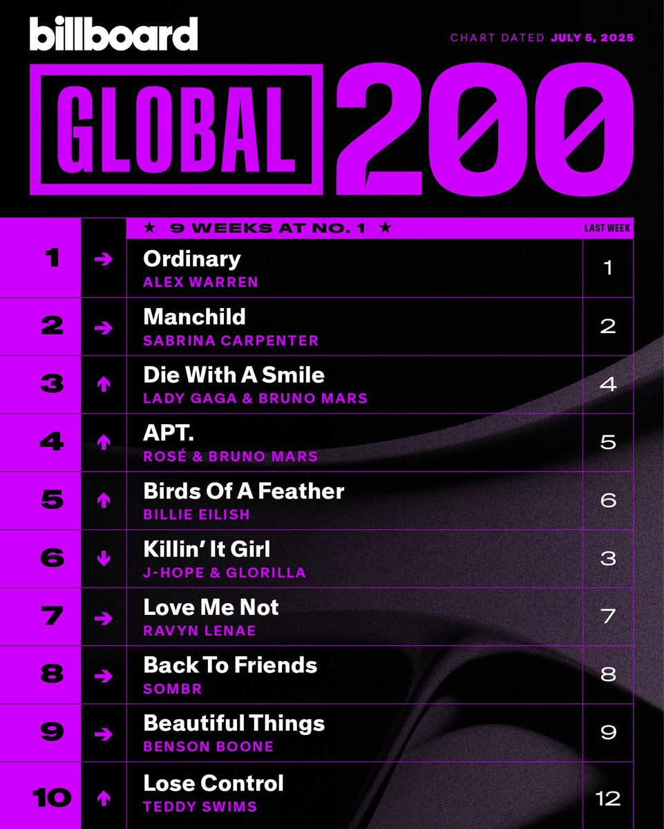 🍊 "Killin' It Girl" сохраняет свою позицию в Топ-10 на этой неделе: на 5-м месте в чарте Billboard Global Excl