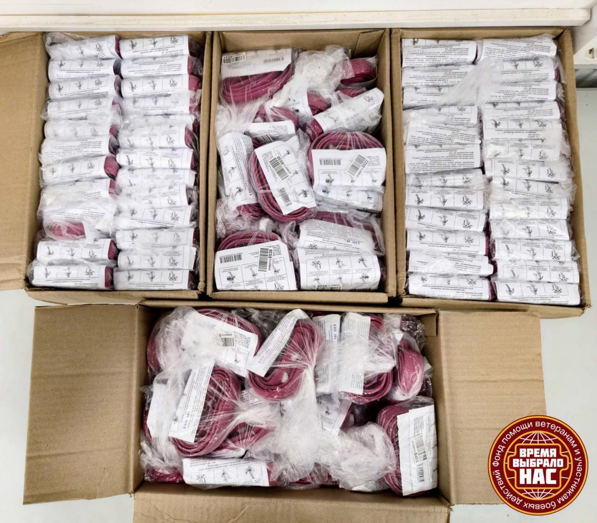 Хорошего дня вам, дорогие друзья! Благодаря пожертвованиям участников группы ДОНБАСС☆ПОМОЩЬ☆2015 нами были закуплены 4 коробки (200 штук) кровоостанавливающих жгутов! Они были использованы при комплектации аптечек, предназначенных для штурмовых подразделений! Огромное спасибо всем, кто помогает не на словах, а на деле! Дата следующего Большого Сбора в Ленинграде – 15, 16 и 17 августа. На «ОЗОНе» можно заказать комплектующие для аптечек. Ссылки на необходимое – vk.com/wall-88530155_21801. Телефоны для связи: +79810079997, +79376137077. Телеграм - t.me/podmoga2015