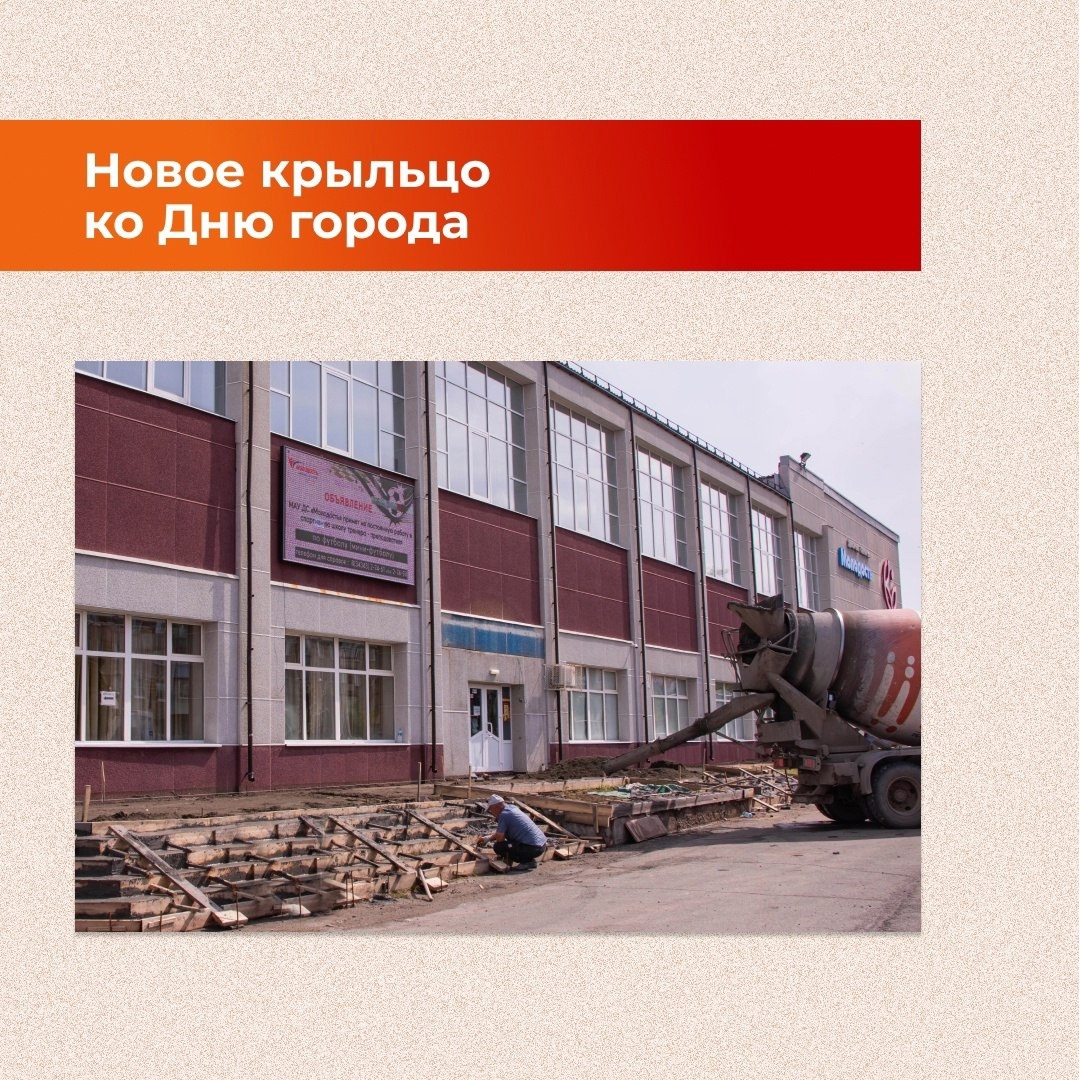 «Святогор» помогает обновить крыльцо Дворца спорта «Молодость» 👍 💬 Специалисты ООО «Святогорстрой» уже демонтировали старое покрытие, вывезли строительный мусор и расчистили площадку для проведения ремонтных работ, затем залили опалубку для новых ступеней и клумб, – рассказал директор МАУ ДС Молодость» Анатолий Колбаев. Совсем скоро здесь будут уложены керамогранитные плиты, на площадке, прилегающей к зданию, – плитка. После окончания работ обновится и входная группа Дворца. Строители планируют закончить ремонт ко Дню города. А пока вход в спортивный комплекс осуществляется с обратной стороны здания 👈 Источник: Святогор Источник