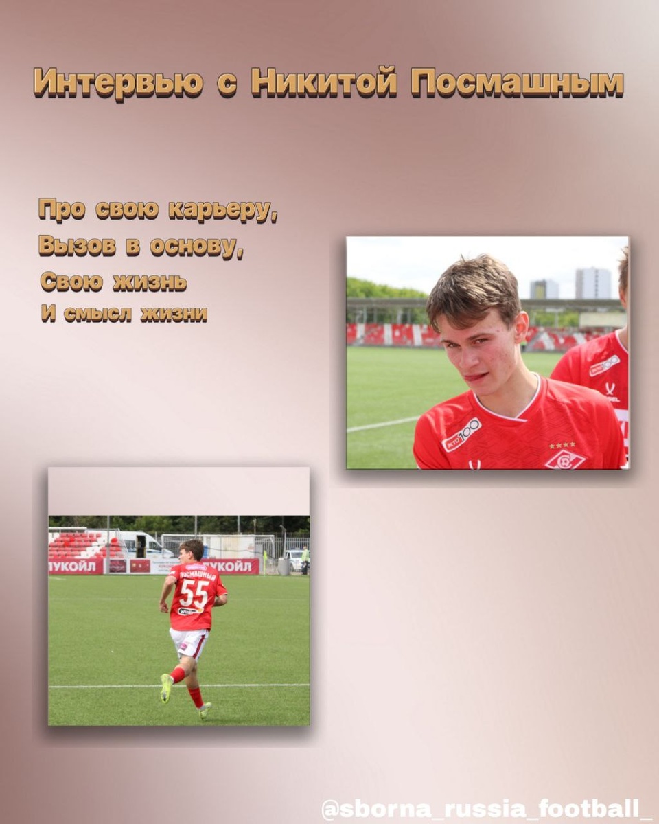 Сегодня я хочу представить вам интервью с игроком Спартака-2 – Никитой Посмашным За фотографии Никиты благодарю @Chudo_Fan 💕🫶 ❓Насколько я знаю, твоя карьера началась в СШОР Зенит, расскажи про этот опыт ⚽Моя карьера началась сначала в Краснодаре, потом в академии Краснодарского края, затем-академия "Ротор", СШОР Зенит, Звезда и Спартак 2 В СШОР Зените опыта я, как такого, не получил, почти не играл, а если и играл, то мало времени. Не могу сказать, что это лучшее время в моей карьере ❓Как проходит тренировочный процесс в Спартак-2, что тебе больше всего нравится? ⚽Тренировочный процесс построен постепенно, начиная от восстановительной тренировки, постепенно увеличивая нагрузки к середине недели, к концу уже легкая тренировка перед игрой. Больше всего нравятся тренировки, когда много работы с мячом, особенно в атаке. ❓С кем в команде больше всего общаешься? ⚽Почти со всеми отлично общаюсь, но больше всех- с Даней Столяровым и Русланом Войцеховским ❓Ты впервые был вызван на ле