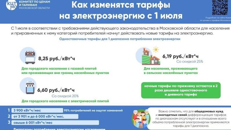 ❗️С 1 июля в соответствии с требованиями действующего законодательства в Московской области для населения и приравненных к нему категорий потребителей начнут действовать новые тарифы на электроэнергию.