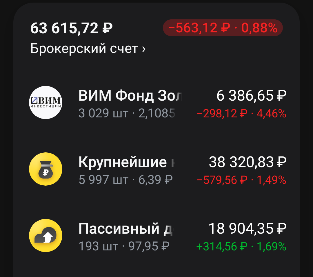 Привет! Пишу о тот, как изменился мой инвест портфель за последние месяцы. Общая сумма на брокерском счёте 836 990руб. в Сбере и 63615 в Т-банке. Начнём с Т-банка Здесь я держу фонды, в следующих пропорциях 60% акции мос. биржи (фонд TMOS) - голубые фишки, 30% - облигации (фонд TPAY), 10% - фонд на золото (GOLD). Периодически делаю ребалансировку, чтобы поддерживать выбранное соотношение активов. Теперь Сбер Продал длинных облигаций и купил просевшие акции. -Банк Санкт-Петербург -Башнефть АП -ГАЗПРОМ -Газпром нефть -Диасофт (новая покупка) -Интер РАО -Казаньогрсинтез АП -ИКС 5 -ЛУКОЙЛ -Мать и дитя (Продал акции ВТБ - они выросли на 20% и купил акции Мать и дитя) -ММК -Московская биржа -НЛМК -НМТП -Роснефть -Россети УРАЛ -Сбербанк АО и АП -Северсталь -Сегежа -Совкомфлот -Сургутнефтегаз АП -Татнефть АП -Транснефть АП -Хэдхантер МКПАО -Яндекс А101 1Р01 Башкорт21 ВТБЛИЗ 1Р1 Газпн3Р10R Делимобиль 1Р-03 ЕвроТранс1 ИнтЛиз1Р07 Казахст07 ЛСР БО 1Р9 НовТехнБ3 ОФЗ 26233 РЕСОЛиБП27 РОЛЬФ 1Р0