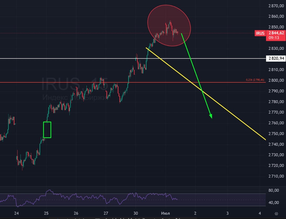 🏦 Индекс Мосбиржи 🟢 Еще вчера блогеры-трейдеры покупали рынок, даже на вечерке, сегодня что-то молчат...Индекс не летит вверх, действие допинга с заявлениями о ставке 18% закончилось, расти дальше не на чем. 🚗 Все по уши лонгах, считая, что таких цен уже не будет. Жду сползание индекса вниз в следствии нехватки аргументов для продолжения роста. Важный уровень - это 2800-2820, который будет являться поддержкой. Мои ближайшие цели - это закрытие гэпа на уровне 2750. #индекс #рубль #индексмосбиржи #ММВБ #IRUS #MXI #MIX #IMOEXF #bogdanoffinvest